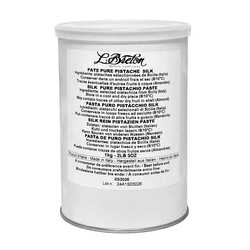 世界最高品質のイタリア・シシリー島東部ブロンテ村産ピスタチオのみを使用した純ピスタチオペースト。ブロンテ産ピスタチオの特徴である芳醇で濃厚な風味をそのまま活かし、高貴なシルクのように繊細なペーストに仕上がっています。その滑らかさは素晴らしく、ドルチェやジェラートの仕上がりに大きく貢献します。是非、最高品質のピスタチオの旨味と香りをお試しください。※2024年5月、パッケージ変更により外装がスチール缶に変わりました。