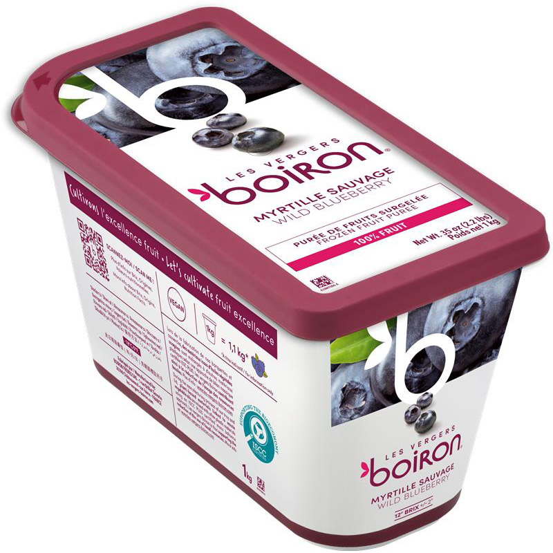 レ ヴェルジェ ボワロン社が生産するブルーベリーの業務用冷凍ピューレ。フランス語で「ミルティーユ」と呼ばれているフルーツは野生種のブルーベリー(こけもも)で、果肉の粒が小さいのが特徴の品種です。ジャムやソースの仕込みに利用されています。※規格変更により無糖タイプになりました。