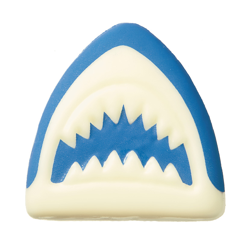 - たにぐちの2025年新作の製菓用チョコオーナメント。鮫をモチーフにしたもので、高さが約38ミリの大きさに仕上げています。サメがモチーフで、しかも大きな口を開けたデザインはこれまで無かったのではないでしょうか。カットケーキやホールケーキ、皿盛りのデザート、ドリンクメニューの飾り付けにお勧めです。