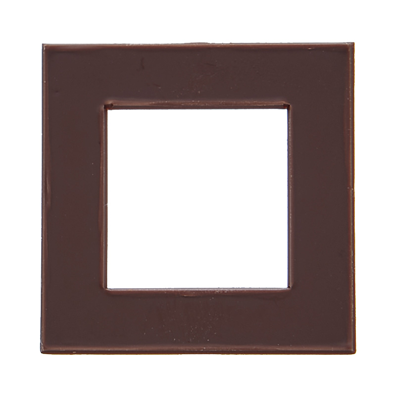 - たにぐちの2025年新作の製菓用チョコオーナメント。正方形のフレーム形状のデザインで、約30ミリ角のチョコレートです。スイートチョコレートベースで、かちっとしたシャープな印象。カットケーキやホールケーキ、皿盛りのデザート、ドリンクメニューの飾り付けにお勧めです。