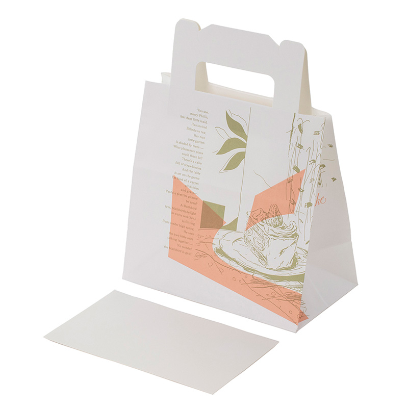 小物を入れる手提げの紙袋。焼菓子やチョコレート菓子等、ちょっとした小さなお菓子を持ち運ぶのに便利な包材です。